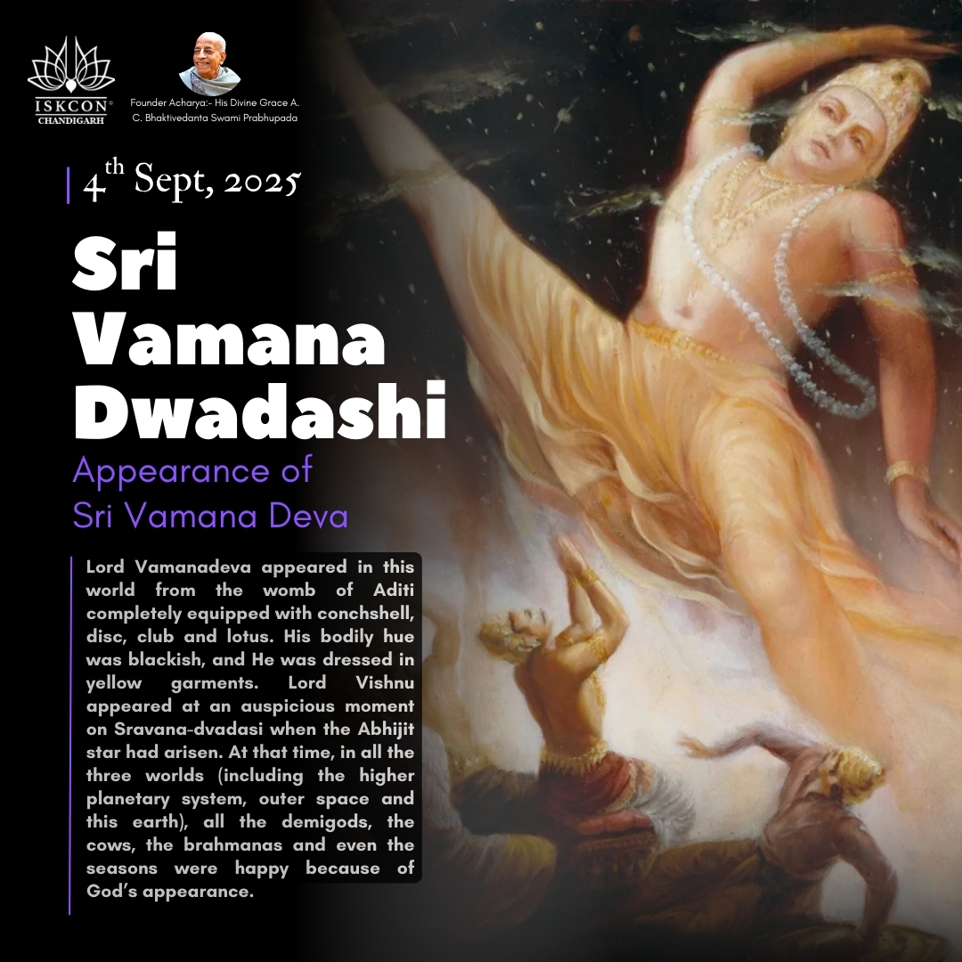 On this auspicious day, we remember the divine pastime of Lord Vāmanadeva, the dwarf incarnation of Sri Vishnu, who appeared to protect the devas and bless the great devotee Maharaj Bali.